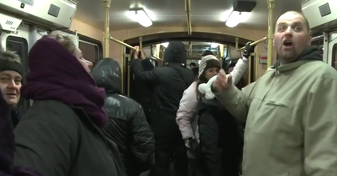 A videón az látszik, ahogyan a zenészek felszállnak a villamosra, a mit sem sejtő utazók közé.