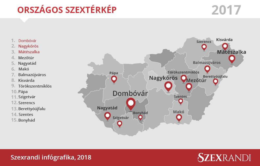 Érdekesség, hogy 2016 nyarán még Mátészalka, 2015-ben pedig Kazincbarcika állt az első helyen, akkoriban Dombóvár még az első tízben sem szerepelt a Szexrandi.hu felmérése szerint.